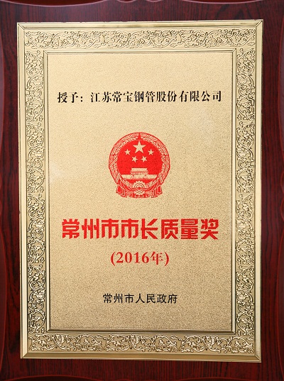 2017年1月10日,2016年度常州市市長質(zhì)量獎頒獎大會在市政府星聚廳隆重召開,會上揭曉了市長質(zhì)量獎獲獎名單,全市共6家企業(yè)獲此殊榮,常寶股份榜上有名,常州市市長費高云親自為獲獎單位頒獎。1月11日,《常州日報》以“追求卓越,打造精品專用管材制造商”為題對常寶股份進行專版報道,從產(chǎn)品質(zhì)量、技術能力、市場開拓、社會責任等方面對常寶追求卓越績效管理及取得成果進行全方位宣傳。常寶股份在去年獲得“常州市質(zhì)量管理先進單位”的基礎上再接再厲,公司領導高度重視,組織員工進行學習培訓,成立以總經(jīng)理為組長的卓越績效推進小組,嚴格對照《卓越績效評價準則》,對企業(yè)領導、戰(zhàn)略、顧客與市場、資源、過程管理、測量分析與改進、經(jīng)營結(jié)果七大部分進行系統(tǒng)考量。經(jīng)過材料評審、現(xiàn)場評審、問詢答辯等評審環(huán)節(jié),常寶股份順利從數(shù)十家申報企業(yè)中脫穎而出、捧得大獎。