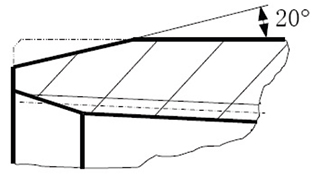扭矩臺肩/Torque shoulder ?設置扭矩臺肩面,有利于準確控制接頭的擰接位置,并降 低接頭連接部位的環(huán)向應力。 ?-20°扭矩臺肩面,可提高接頭擰接后的自鎖效應。 | |