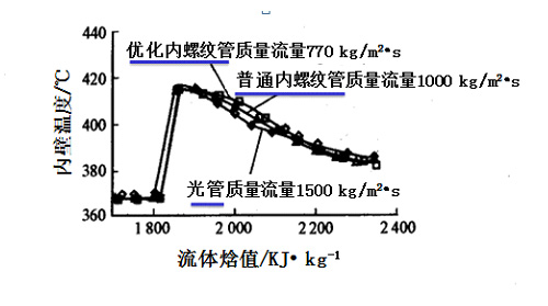 優(yōu)化內(nèi)螺紋管是在傳統(tǒng)內(nèi)螺紋管基礎(chǔ)上進(jìn)一步發(fā)展起來的新一代內(nèi)螺紋管,其螺紋升角達(dá)到40°多,相比普通內(nèi)螺紋管,又能提高20%的傳熱效率,因此與傳統(tǒng)的內(nèi)螺紋管相比,其具有更佳的傳熱效應(yīng);下圖為光管、普通內(nèi)螺紋管、優(yōu)化內(nèi)螺紋管傳熱特性